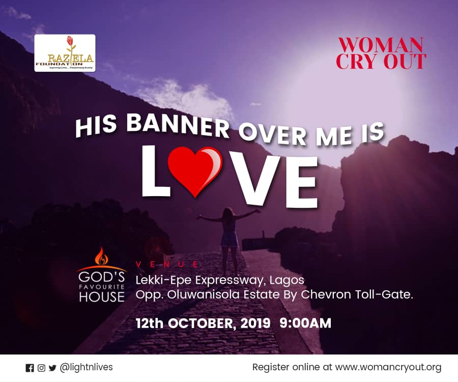 So join us, for another WOMAN CRY OUT edition. As we explore the love of God yet more as our theme says, HIS BANNER OVER US IS LOVE.